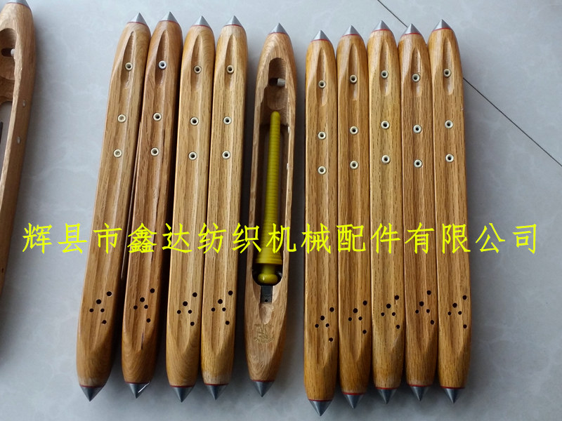 織布機(jī)梭子的側(cè)面固定著3個(gè)瓷眼,可以選擇性的使用,也可以同時(shí)使用,讓緯紗按照“S”形從梭尖處開(kāi)始穿線。